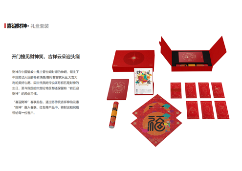 2023年新春禮品定制推薦——新春禮盒“喜迎財(cái)神”春聯(lián)禮包,通過(guò)將傳統(tǒng)吉祥神仙元素“財(cái)神”融入春聯(lián)、紅包等產(chǎn)品中,將財(cái)運(yùn)和祝福帶給每一位客戶。