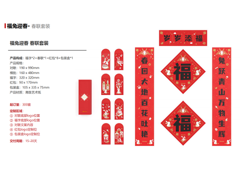 2023年新春禮品定制推薦——春聯(lián)紅包套裝將福兔元素融于春聯(lián)、福字之中,吉祥喜慶的配色,搭配靈動(dòng)活潑的福兔形象,為生活增添幾分情趣與怡然,福兔迎春,歲歲添福