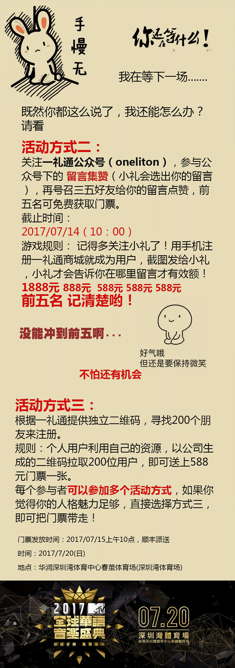你期待的MTV華語盛典,我們等待你的關注! 一元購的門票還在等待嗎?