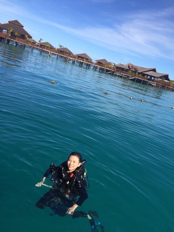 酷愛游泳,一咕嚕跑到馬來西亞沙巴市仙本那島考了潛水OW證。