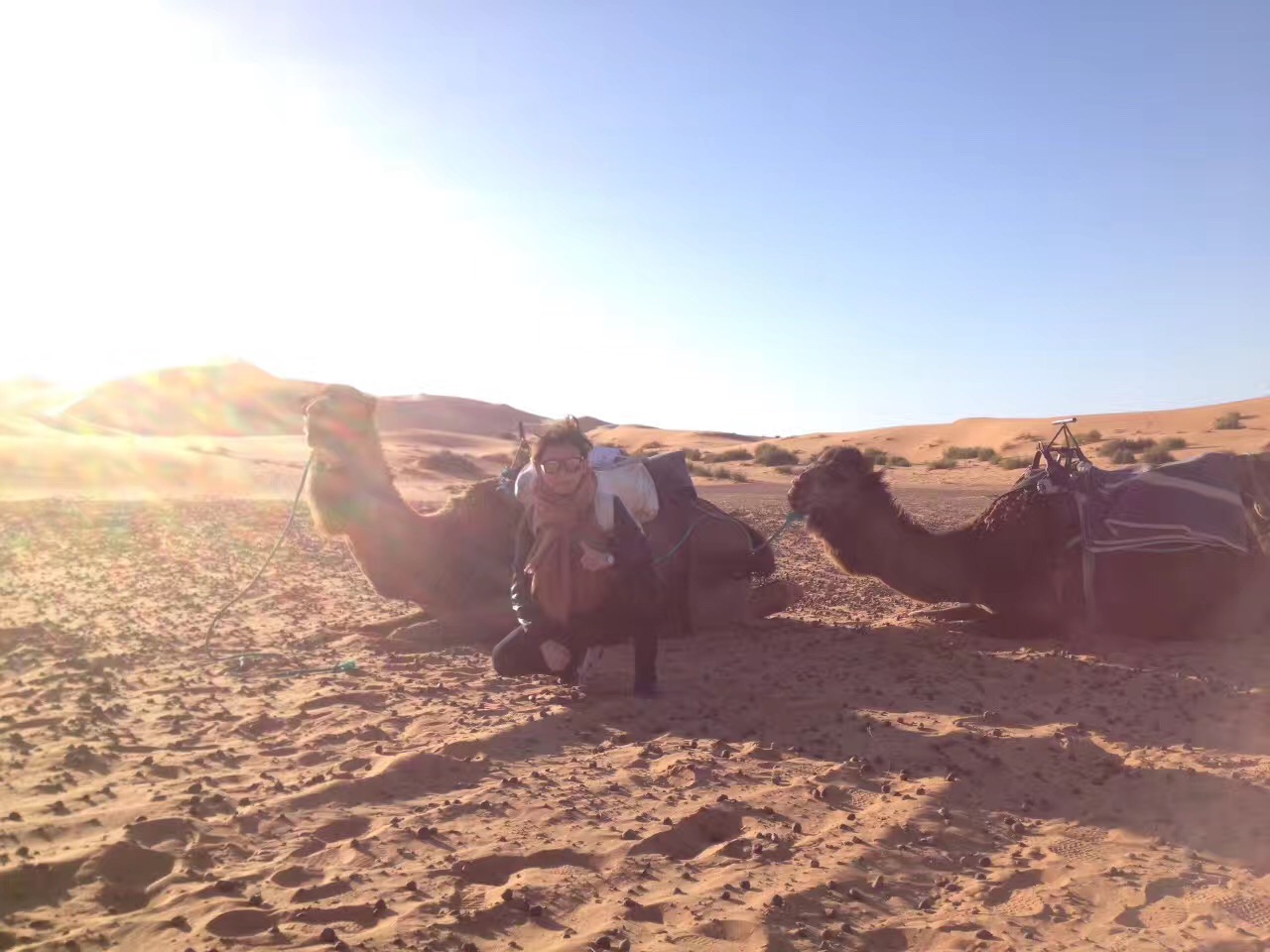 夕陽余暉下,她騎著駱駝在撒哈拉沙漠,沙丘連綿起伏,大漠一望無際,層層蕩開的沙紋波浪般蔓延,沙海覆上金色,生命的恢宏讓她心胸豁然開朗。