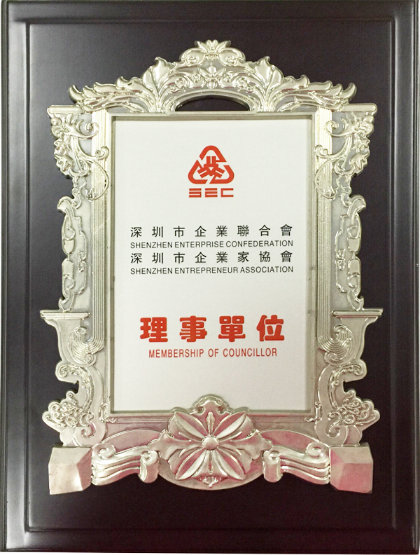 ![]() | 榮獲深圳市企業聯合會企業家協會理事單位稱號 頒發單位:深圳市企業聯合會及深圳市企業家協會 獲獎級別:公司榮譽 獲獎時間:2014年08月01日 |