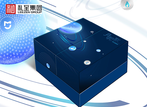 綠米聯創中秋節禮品定制案例:浩瀚星空,星月相連,一輪明月照亮整片星空,綠米產品與月亮層層圍繞,如星星一般,閃閃發光。綠米聯創中秋節禮品定制案例將月亮的陰晴圓缺與綠創產品形象相結合,寓意美好不失品牌調性